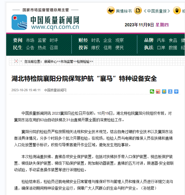 中國(guó)質量新(xīn)聞網(2025.12.亚🔞色图🚩26)厦门成同机电制造有限公司(4G网站)襄(xiang)陽分院(yuàn)保駕護(hù)航“襄馬(ma)”特種設(shè)備安全(quán)